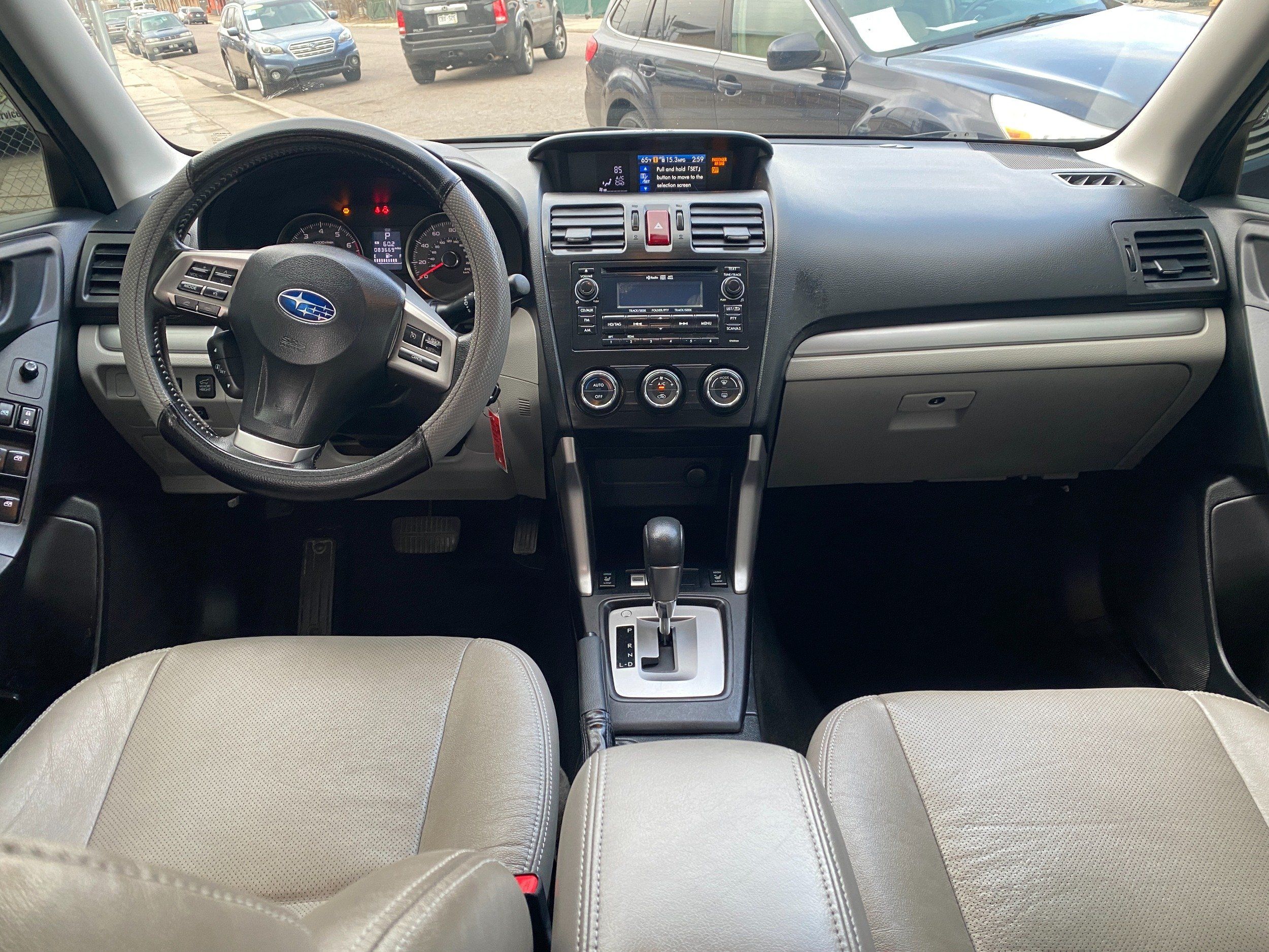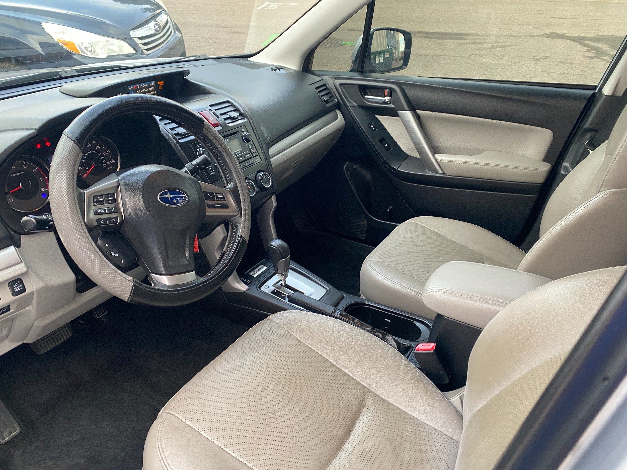 All cars come with receipts and work orders of the work that we performed. 2014 Subaru Forester 2.5i Limited, with leather 83K miles. no rust, Clean Title, Non Smoker, Non Pet, Ice Silver metallic paint with Gray leather interior. Full 120 point inspection, Fresh fluids & filters we drive our cars over 100 miles to ensure that everything is operating as it should! 3 month 3k mile limited warranty. Extended Warranty options available.